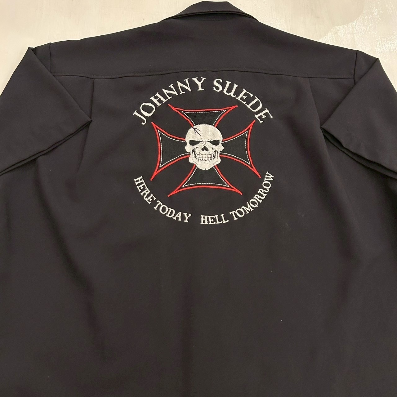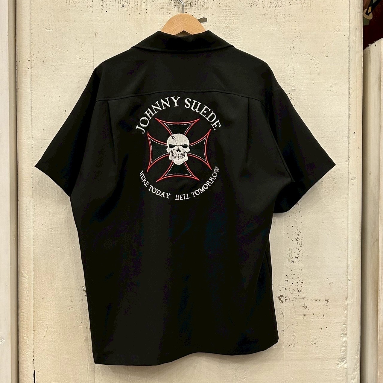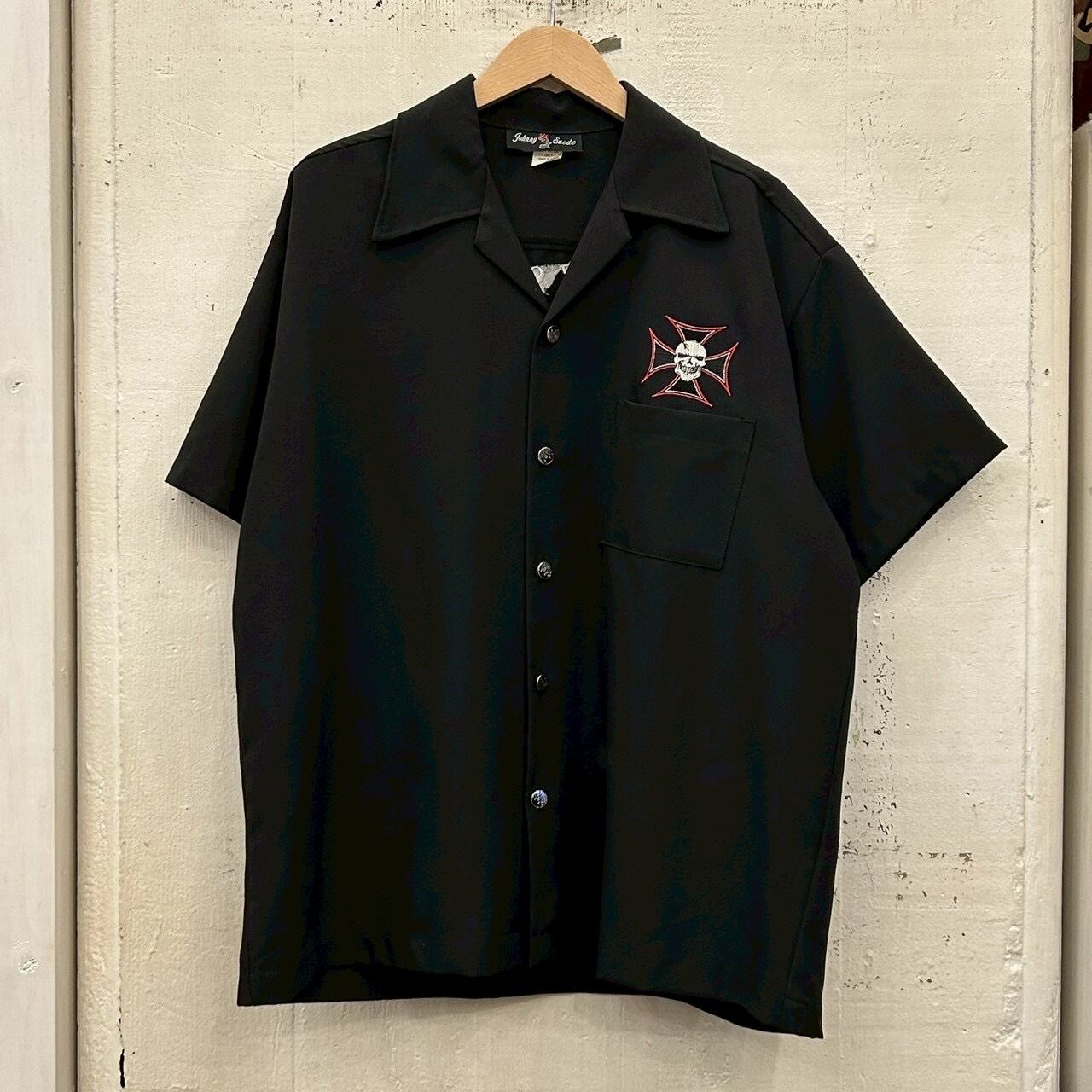 ブラックボディの開襟シャツ