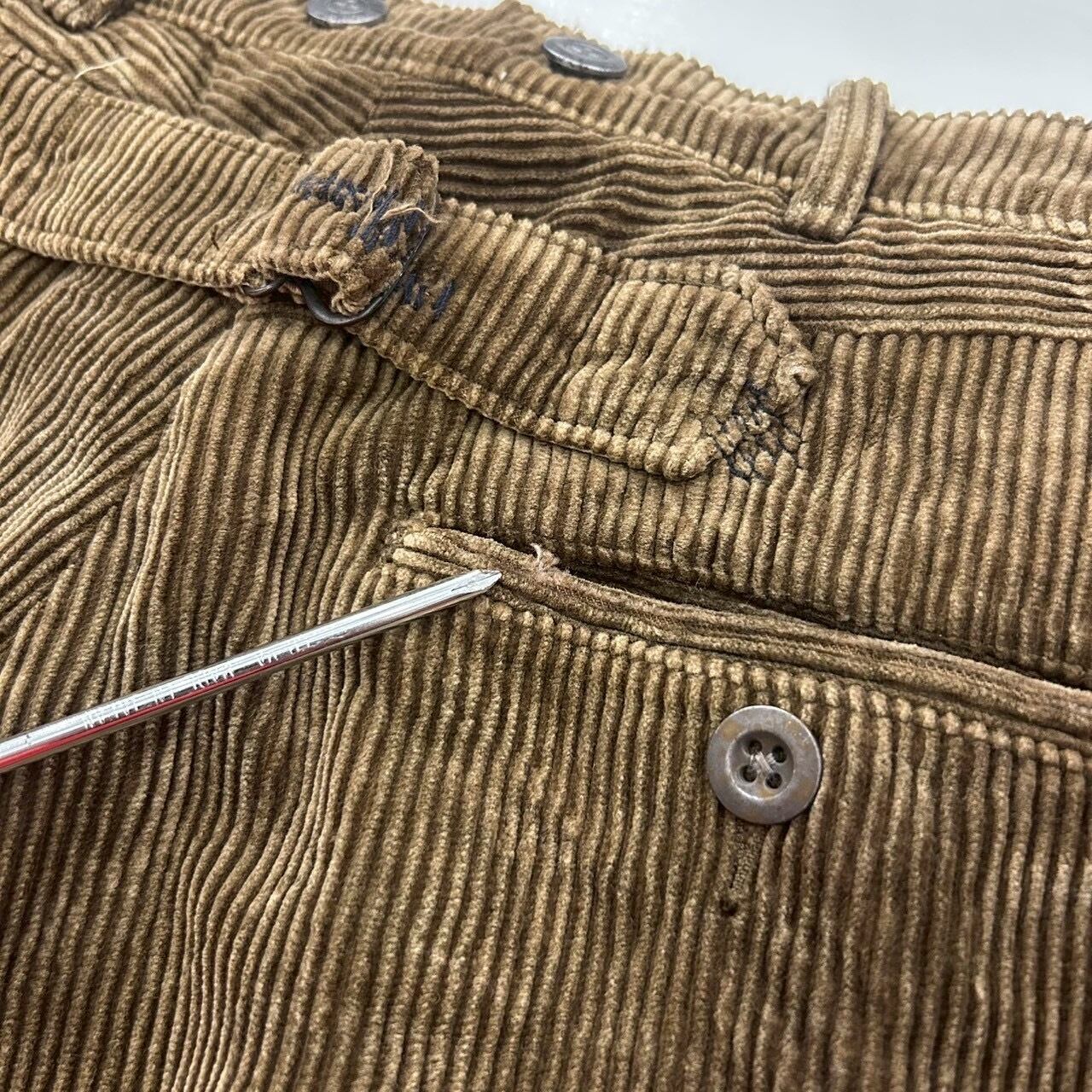 バックシンチ付きのコーデュロイパンツ