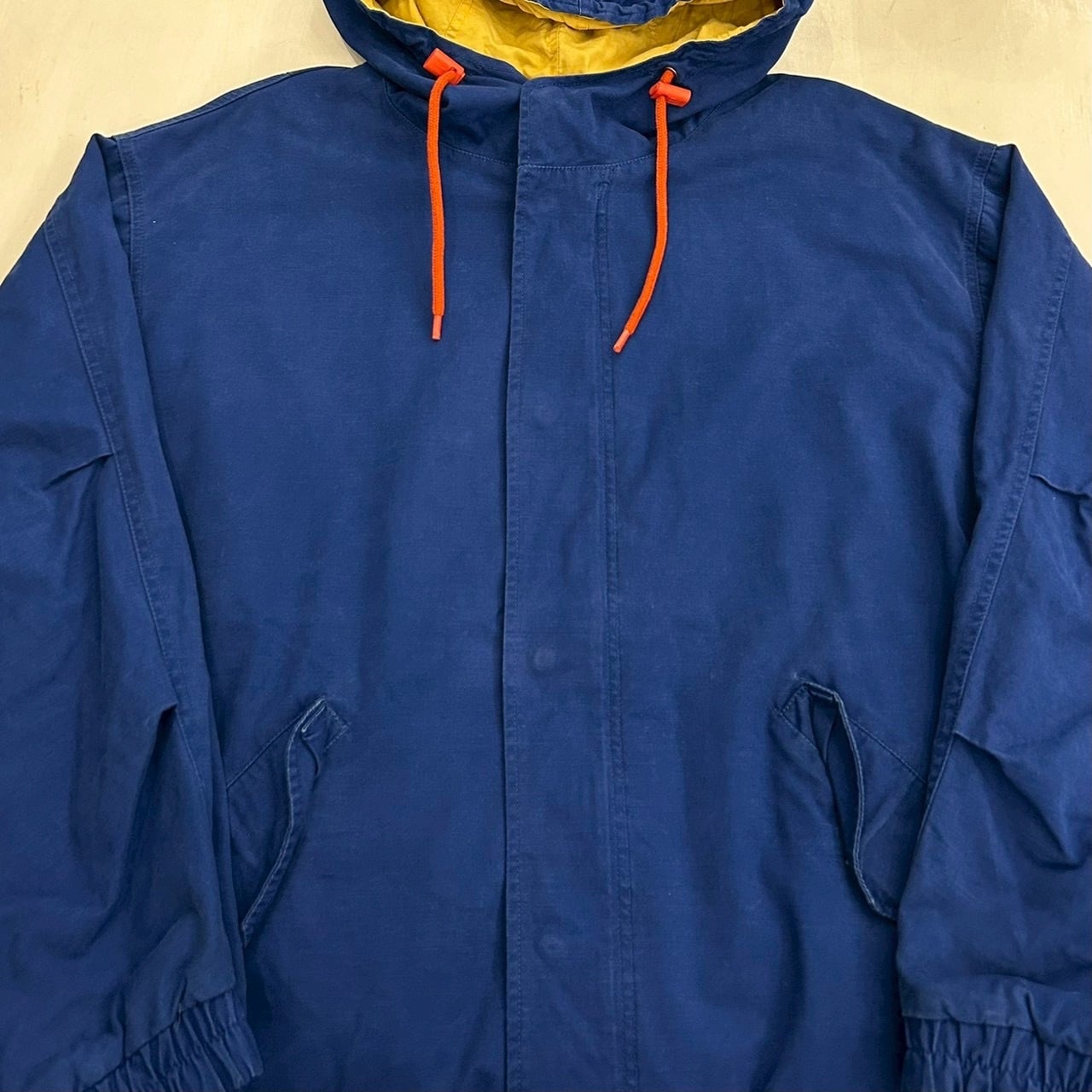 表が鮮やかなブルーで裏地がイエロー